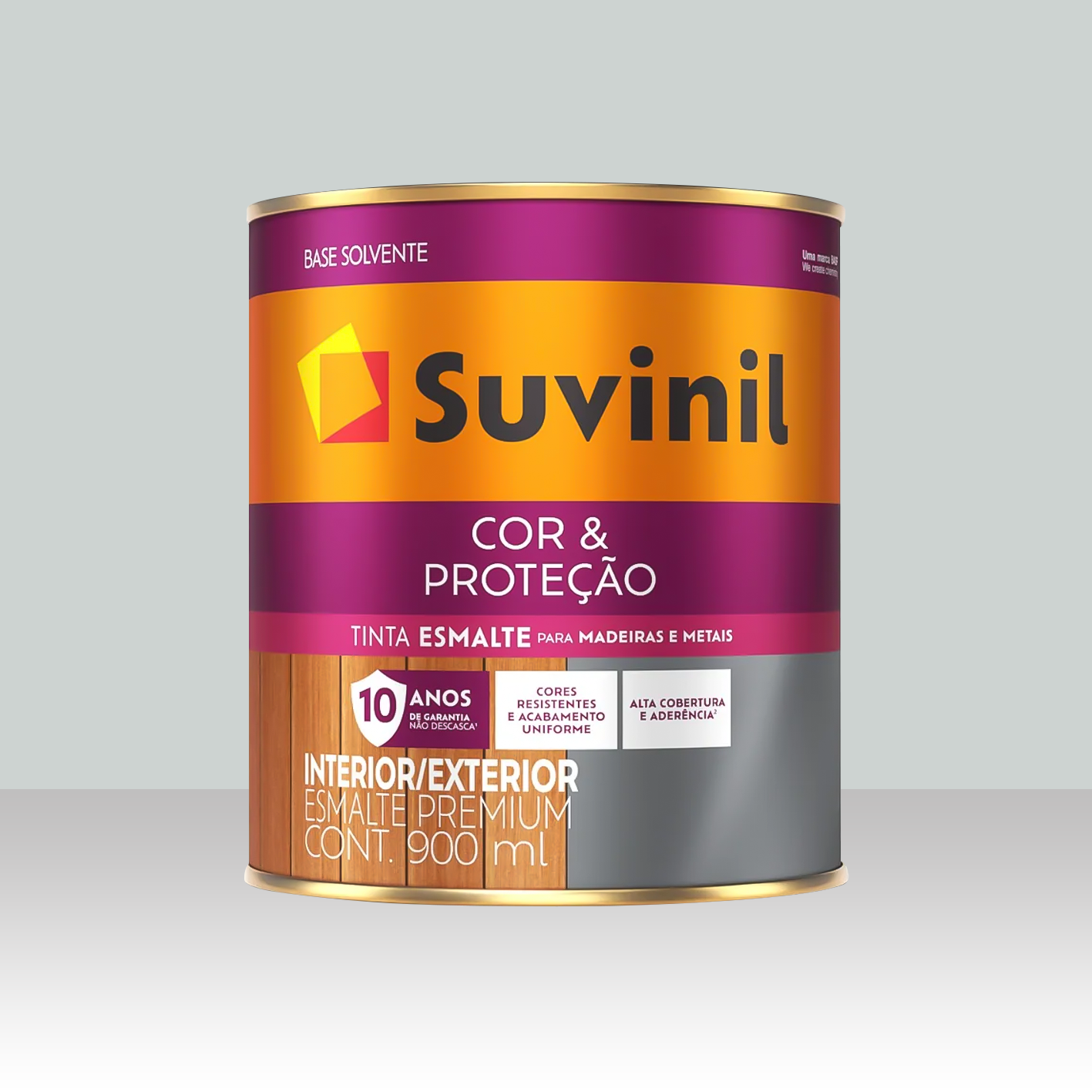 A tinta Suvinil Cor & Proteção Brilhante Base Solvente tem brilho intenso, alta durabilidade e proteção contra sol e chuva. Ideal para madeira e metal com acabamento sofisticado.