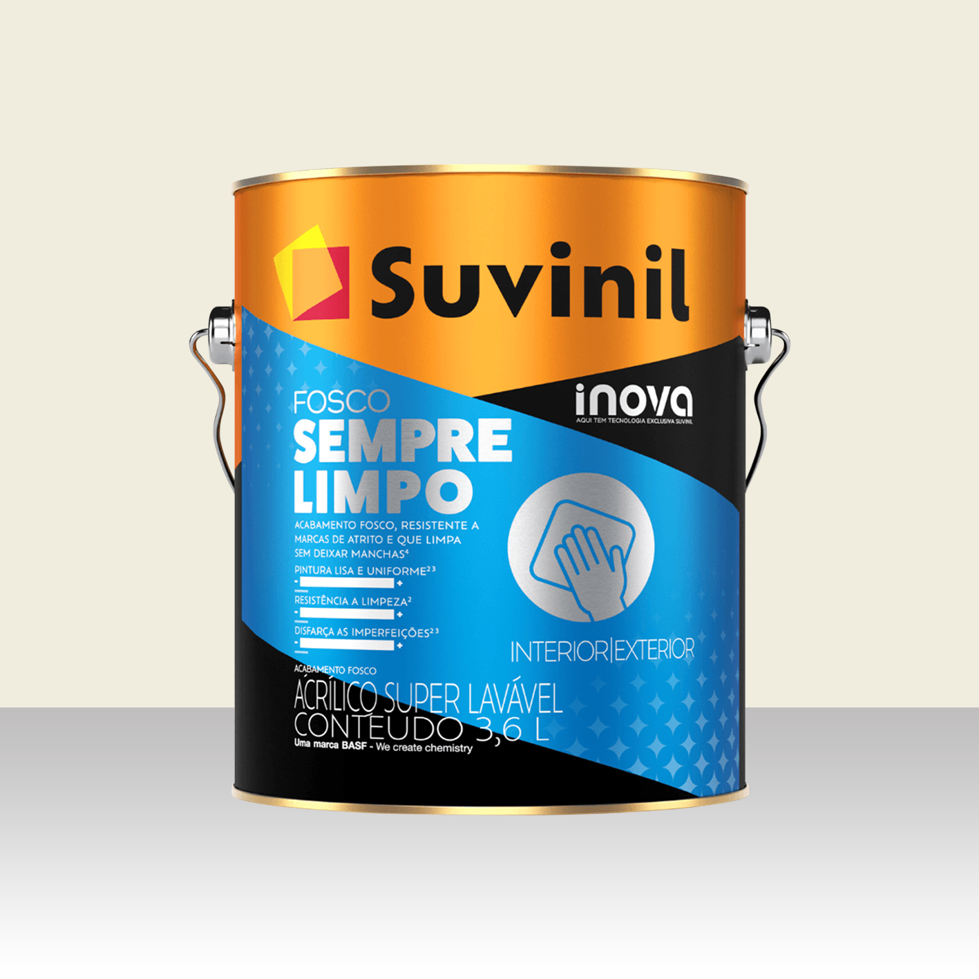 A Suvinil Sempre Limpo Fosco é a escolha ideal para interiores: acabamento fosco, fácil de limpar sem manchar, com ótima cobertura e disfarce de imperfeições. Tudo isso com a qualidade e resistência que só a Suvinil entrega.